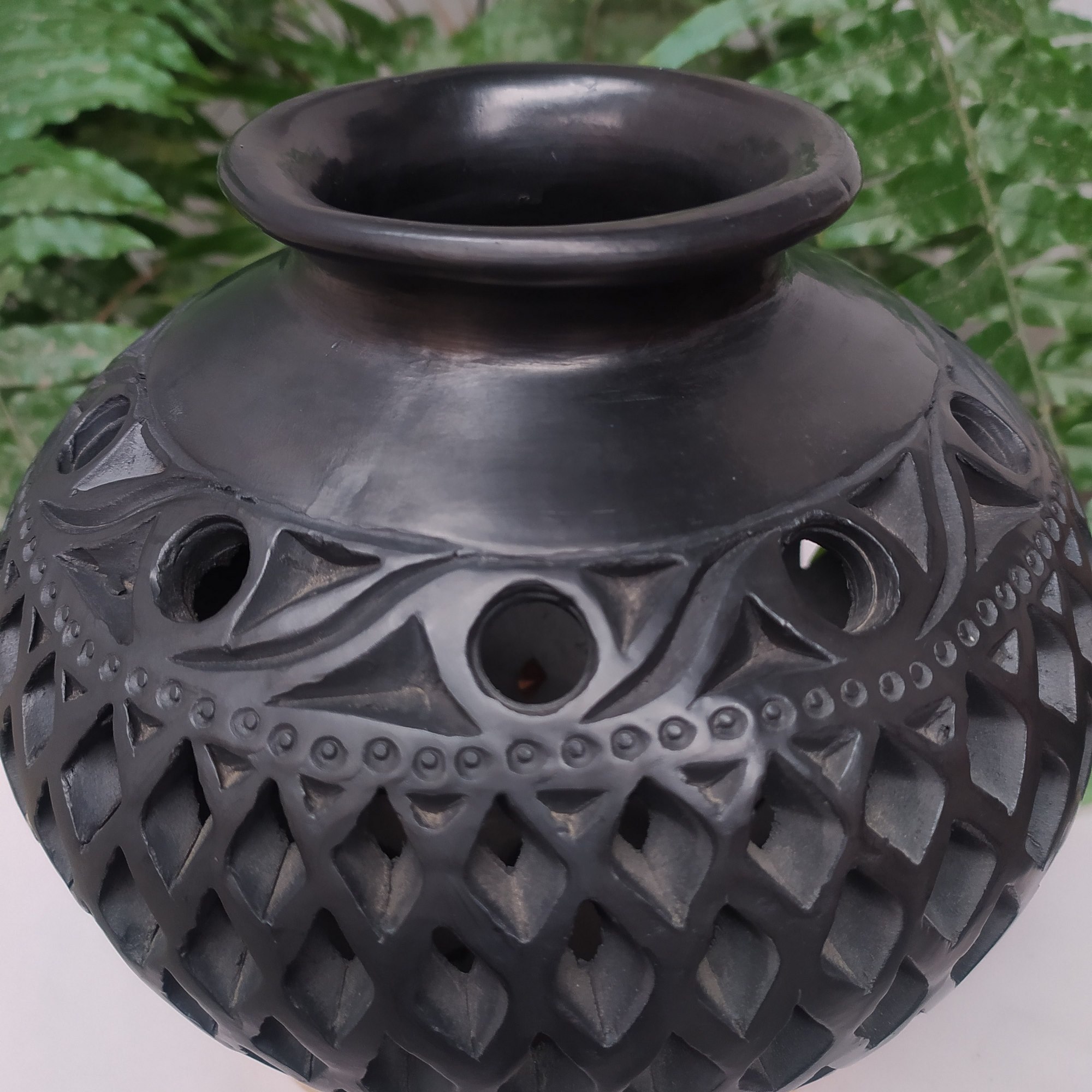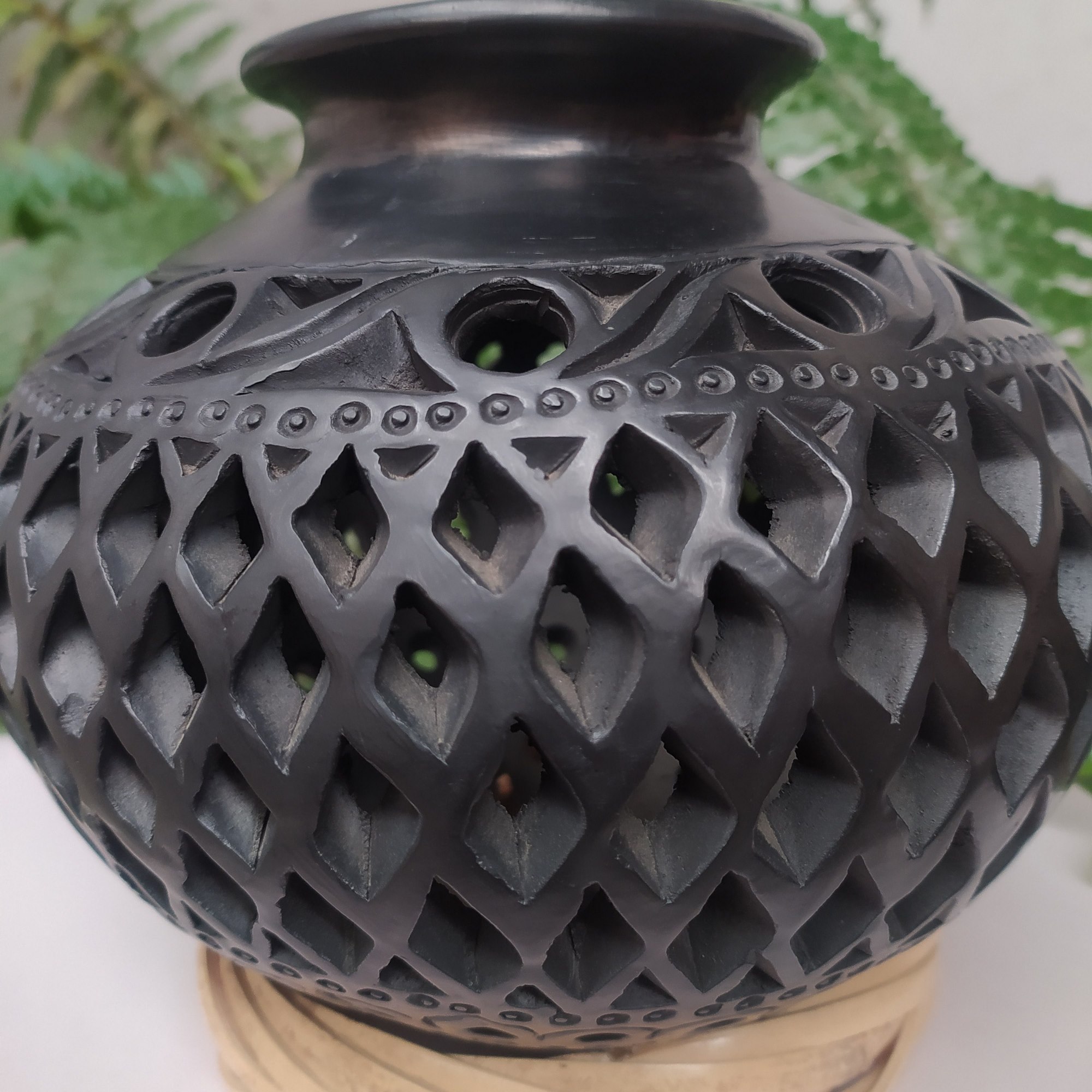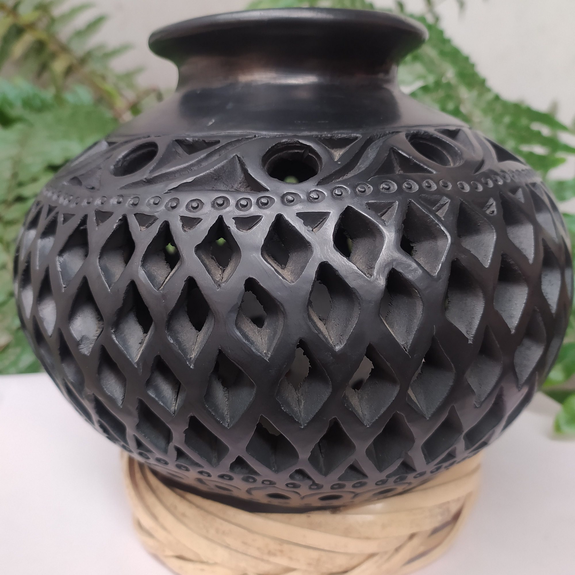 Cántaro mediano calado completo de rombos con franjas en circulos