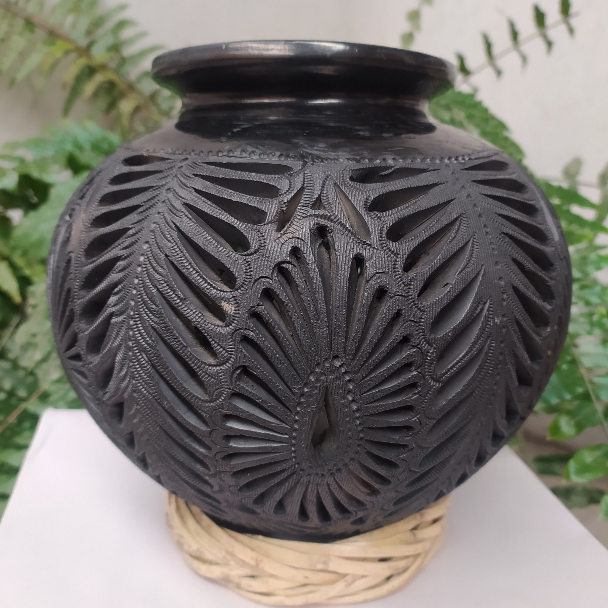 Cántaro calado completo de flor de hojas extendidas