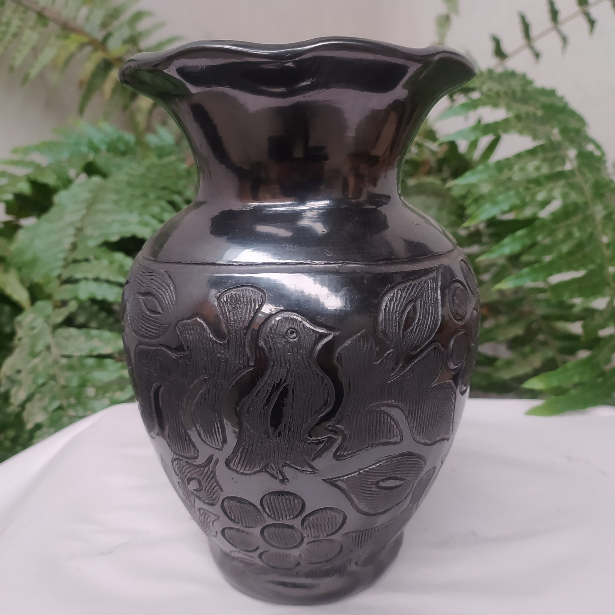 Florero de boca ondulada mediana grabado de flores